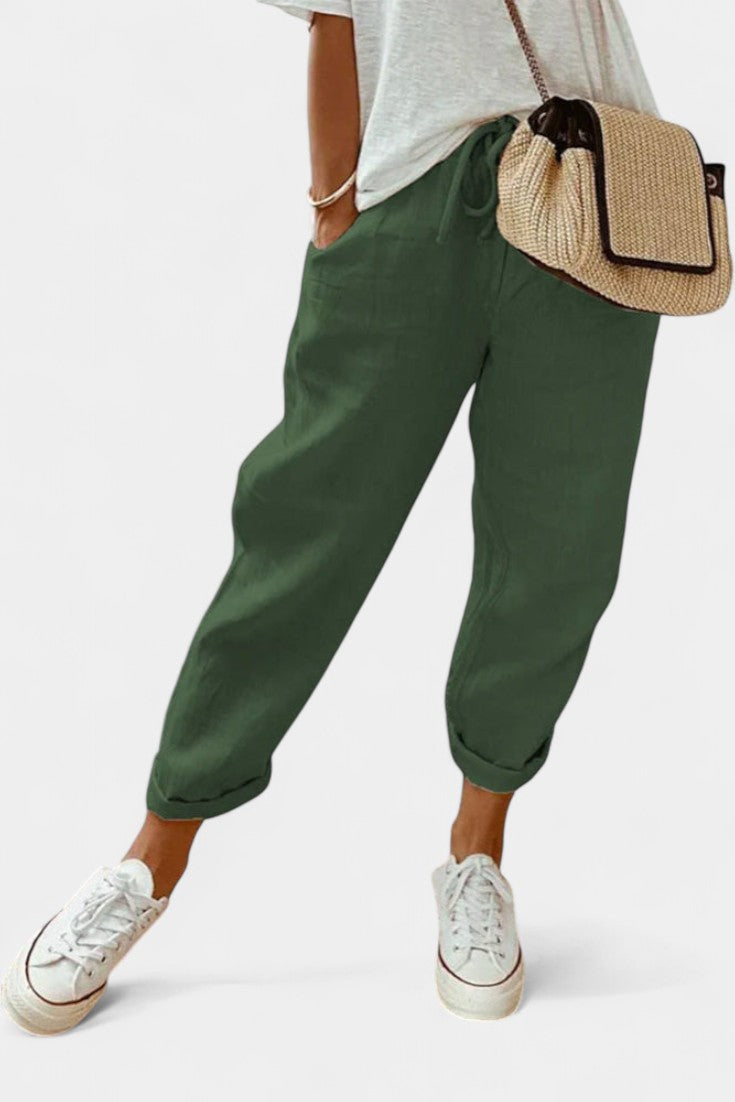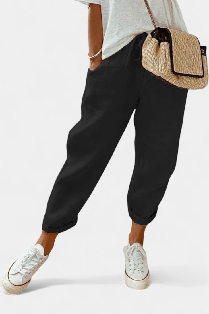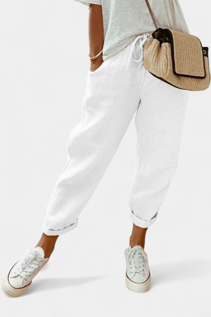 Mantente fresco y pulido con estos pantalones de verano elegantemente sencillos, diseñados para mantenerte sintiéndote fresco sin sacrificar el estilo. Con una silueta relajada de pierna recta y una cintura alta favorecedora, ofrecen transpirabilidad, comodidad y versatilidad atemporal para los días de clima cálido.